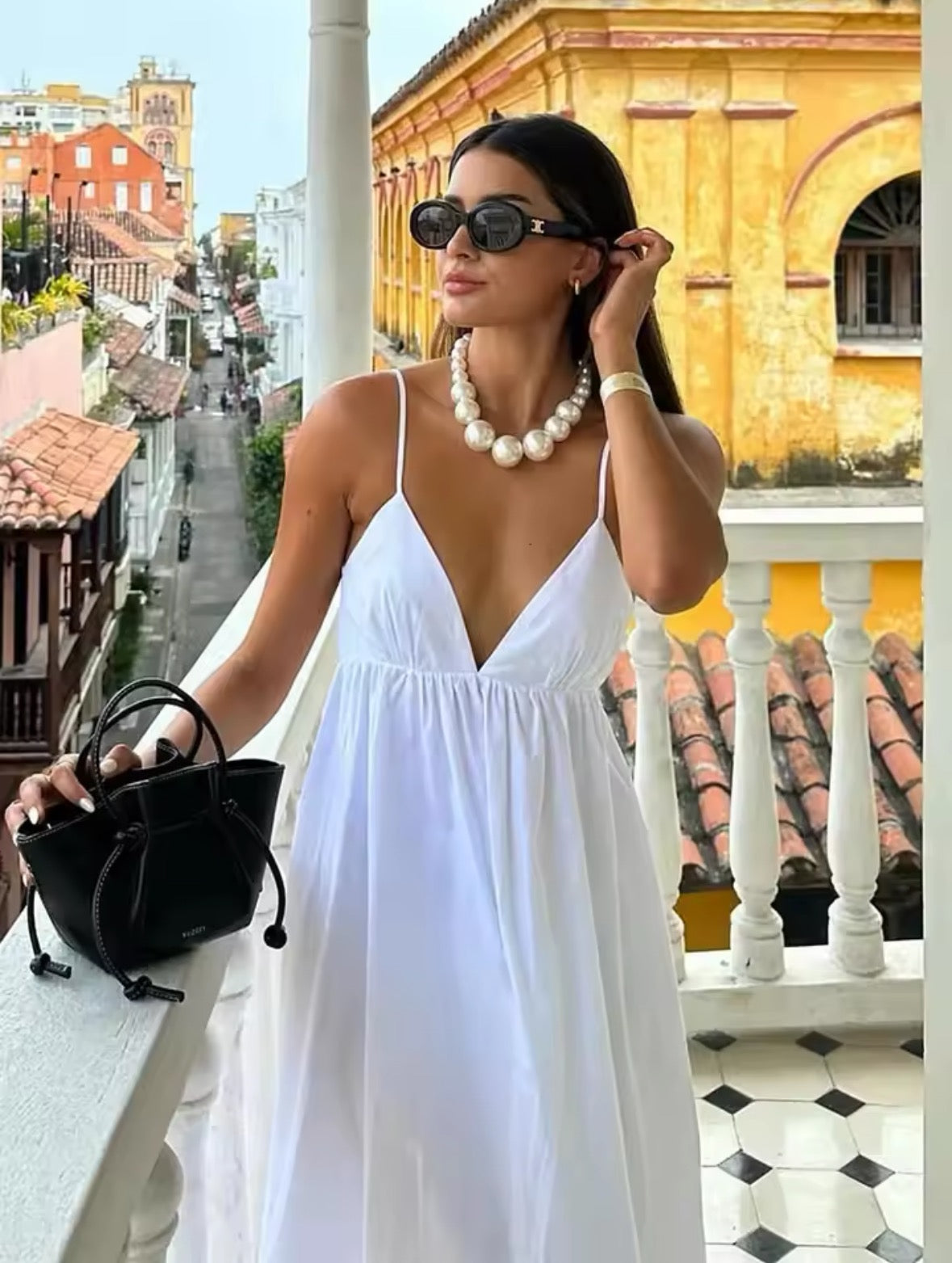 The dress that makes summer dreams come true. Feather-light, backless, and made for sunny moments.